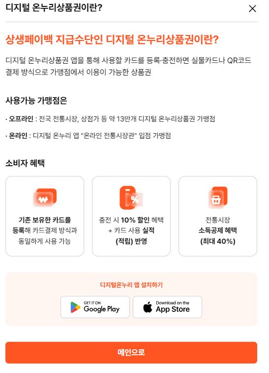 | 온누리 사용 | 디지털 온누리상품권, 유효기간 5년, 가맹점 약 13만 곳 | 가맹점 외 또는 유효기간 경과분 사용 불가 |