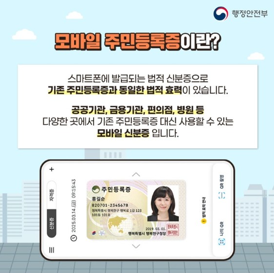 모바일 주민등록증은 주민등록법 제24조의2에 따라 실물 주민등록증과 동일한 법적 효력을 가집니다.