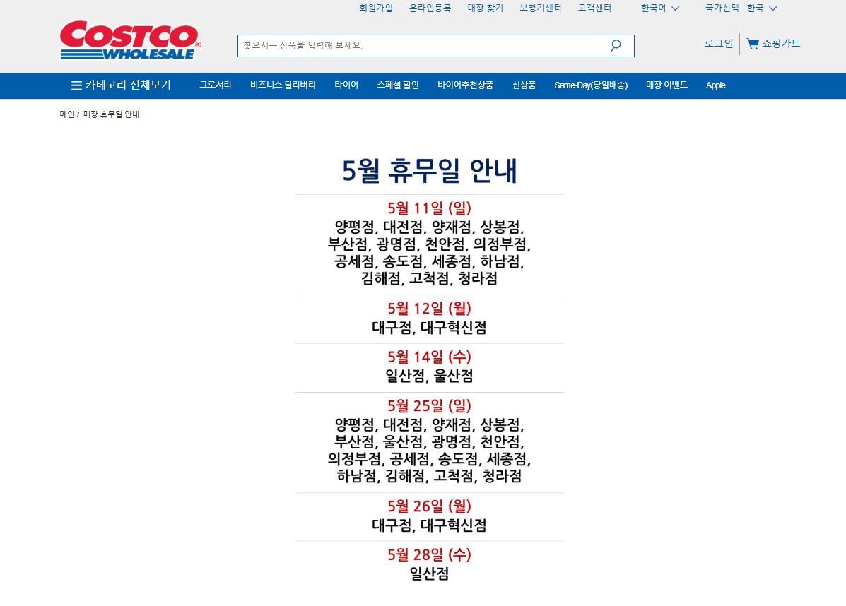 오늘 코스트코 가려는데 열었는지 모르겠다면 가장 빠른 방법은 공식 홈페이지 확인입니다.